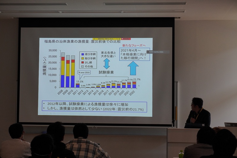 The first day began with lectures at the Great East Japan Earthquake and Nuclear Disaster Memorial Museum in Futaba Town (hereinafter “Denshokan”). Director Nanba gave an opening address and explained the purpose of this seminar. Then, four faculty members from IER delivered lectures on the environmental and ecological effects of radioactive materials released during the Fukushima Daiichi Nuclear Power Plant accident.