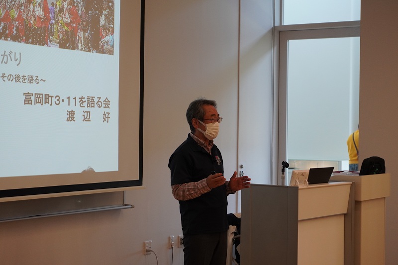 On the second morning, after visiting Denshokan’s exhibition booth, we participated in the Denshokan fieldwork, taking a bus tour of the affected areas in Futaba Town and Namie Town and saw damages caused by the earthquake and the state of recovery. We also received a lecture by the museum’s storyteller. In the afternoon, research presentations were given by the graduate students of Fukushima University majoring in Environmental Radioactivity, followed by group discussions among students from different fields, including the graduate and undergraduate students of the Humanities and Social Sciences and Engineering of Fukushima University, and students of the National Institute of Technology, Fukushima College, where various opinions regarding the reconstruction and community development of disaster-affected areas were exchanged.