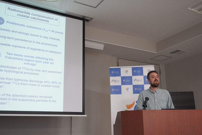 International Visiting Scholar Chaboche presented the physico-chemical analyses of lake sediment cores collected from three reservoir dams and at the river mouths of three contaminated rivers. Based on the results, he reconstructed the impact of land-use changes on sediment contributions in three contrasted catchments since the Fukushima accident in 2011, while also proposing perspectives for transferring sediment tracing methods used in continental environments to marine settings.
