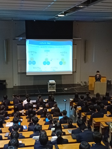 髙田教授は、多核種除去設備(ALPS)の仕組み、処理水の海洋放出後の福島県沿岸のトリチウム濃度などについて解説しました。生徒の皆さんにとって、科学的情報を踏まえ、今後どのように判断していくかについて、あらためて考える良い機会になったようです。
