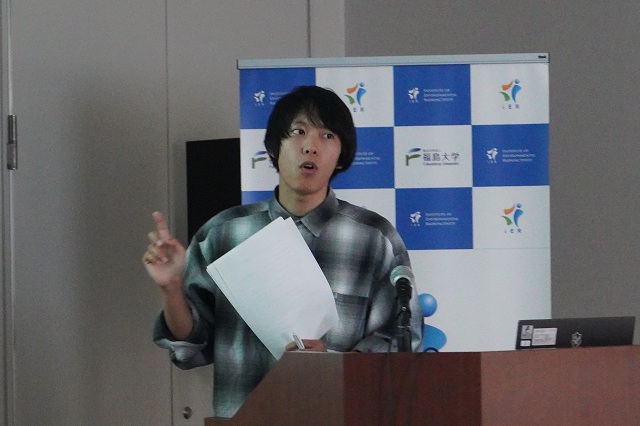 発表者菅野遥登(共生システム理工学研究科 環境放射能学専攻 博士前期課程2年)